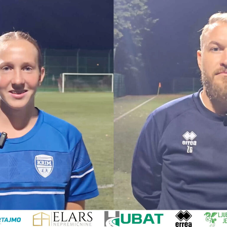 Vita Kolar in trener Žiga Grgasović po tekmi Krim Hubat – ŽNK Cerklje