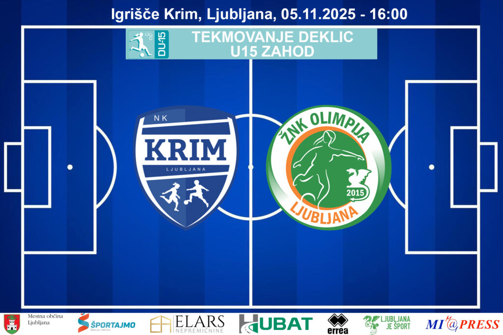 Nov42025Novice ženskeKrim Hubat – ŽNK Olimpija, Tekmovanje deklic DU15, Igrišče Krim, Ljubljana, 05.11.2025 – 16:00 4 novembra, 2025Post navigationPreviousPrevious post:Napoved tekme DU13 Krim Hubat – NK BrinjeNextNext post:DU13 Krim Hubat – NK BrinjeRelated PostsSŽNL licenca za sezono 2026/2730 aprila, 2026Foto galerija tekme ŽNK Olimpija – Krim PC Bolit26 aprila, 2026Trener Žiga Grgasović izjava po tekmi26 aprila, 2026Poraz od Olimpije26 aprila, 2026Začetna postava za mestni derbi z Olimpijo26 aprila, 2026DU15 zmaga za polfinale26 aprila, 2026