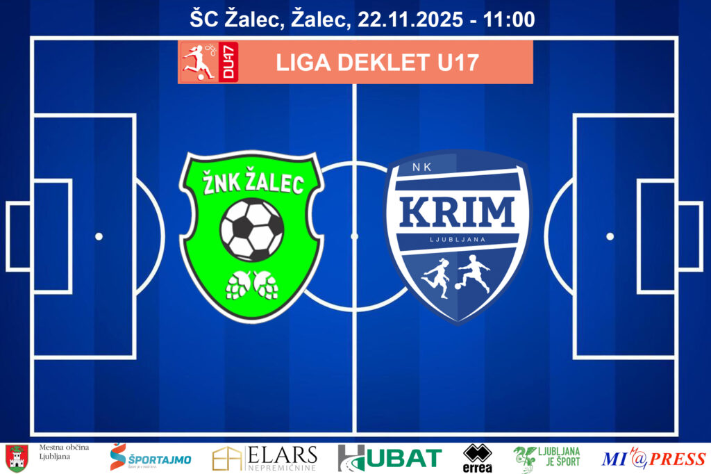 Nov202025Novice ženskeŽNK Žalec – Krim Hubat, Liga deklet U17, ŠC Žalec, Žalec, 22.11.2025 – 11:00 20 novembra, 2025Post navigationPreviousPrevious post:Lia Jasenc pred tekmo ŽN Maribor – Krim HubatNextNext post:Začetna postava za tekmo ŽN Maribor – Krim HubatRelated PostsSŽNL licenca za sezono 2026/2730 aprila, 2026Foto galerija tekme ŽNK Olimpija – Krim PC Bolit26 aprila, 2026Trener Žiga Grgasović izjava po tekmi26 aprila, 2026Poraz od Olimpije26 aprila, 2026Začetna postava za mestni derbi z Olimpijo26 aprila, 2026DU15 zmaga za polfinale26 aprila, 2026