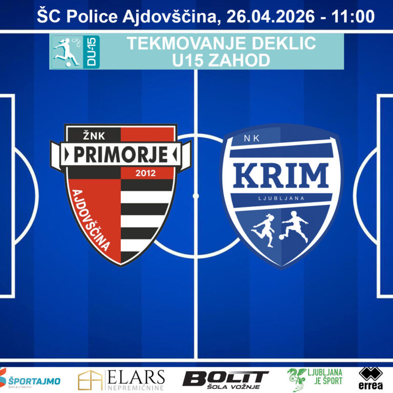 Primorje Tosla Nutricosmetics – NK Krim, Liga deklic U15, ŠC Police, Ajdovščina, 26.04.2026 – 11:00