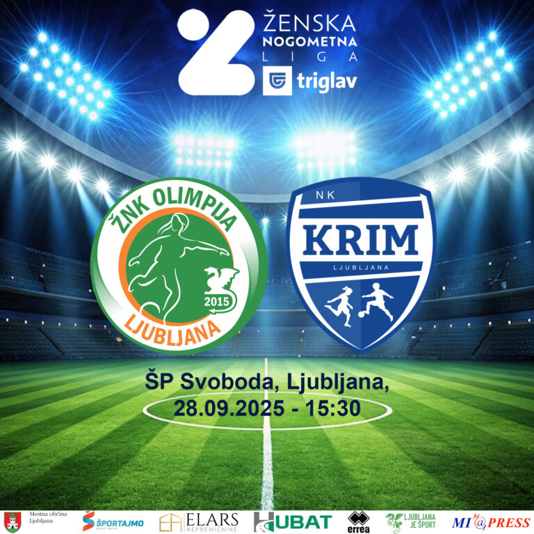 Naslednja tekma članic, mestni derbi ŽNK Olimpija – Krim Hubat, Ženska nogometna liga Triglav, ŠP Svoboda, Ljubljana, 28.09.2025…